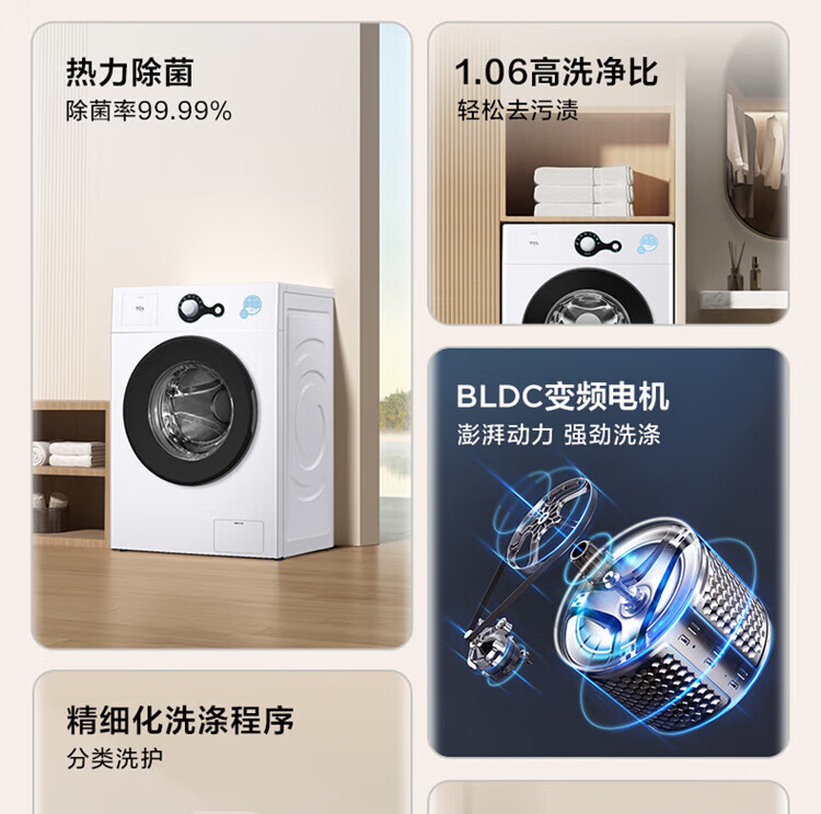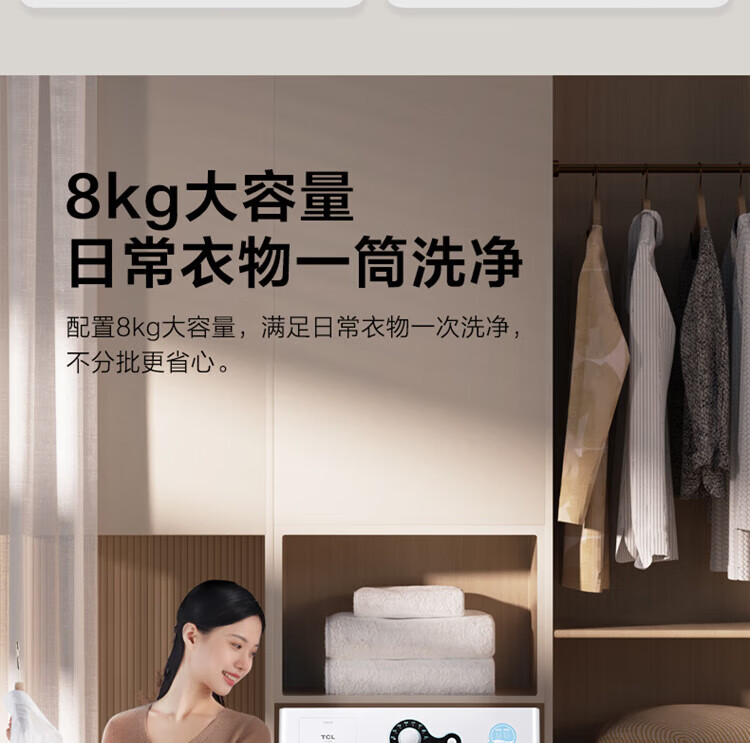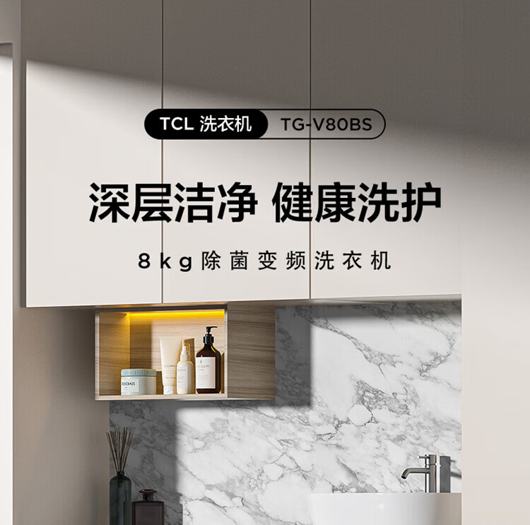 TCL TG-V80BS 除菌变频洗衣机 8kg (单位:台) 芭蕾白