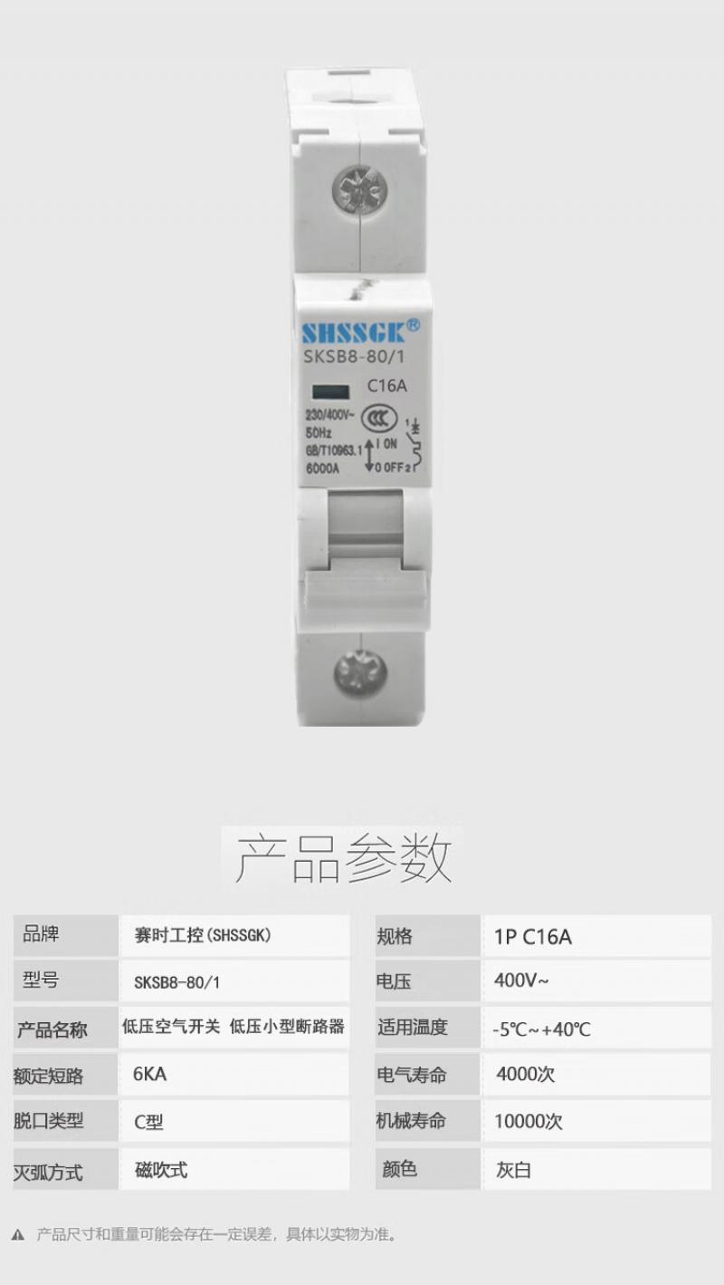 赛时工控(SHSSGK) 低压空气开关 低压小型断路器 (单位:台) SKSB8-80/1 1P C16A灰白 (单位:台)