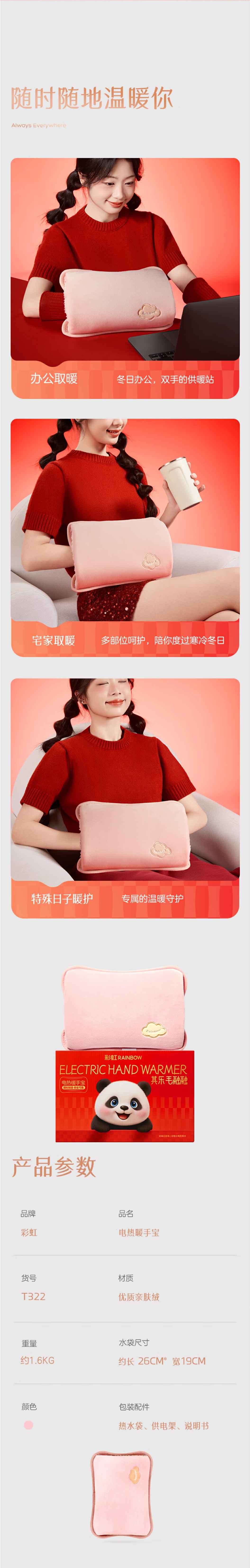 彩虹(rainbow)免洗亲肤绒插手电热暖手宝粉色 T322-F (单位:个)