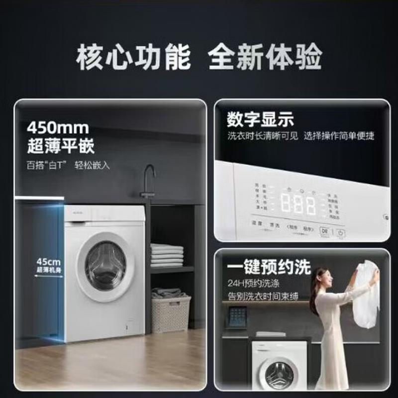美菱(MELING)7公斤全自动变频超薄嵌入式家用大容量除菌除螨洗健康桶自洁1级能效滚筒洗衣机