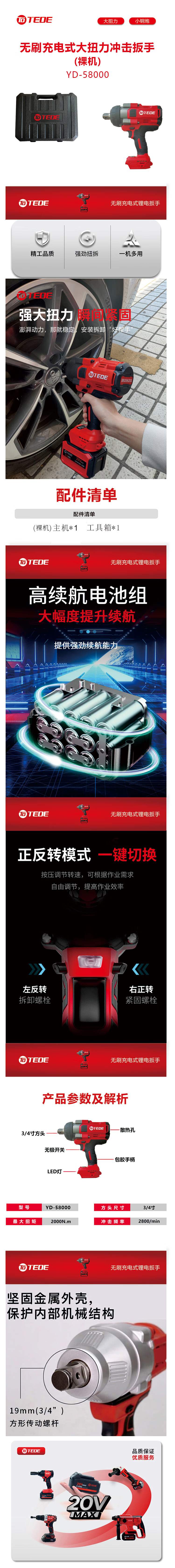 TEDE YD-58000 无刷充电式大扭力冲击扳手(裸机) 3/4寸 2000N.m (单位:台)