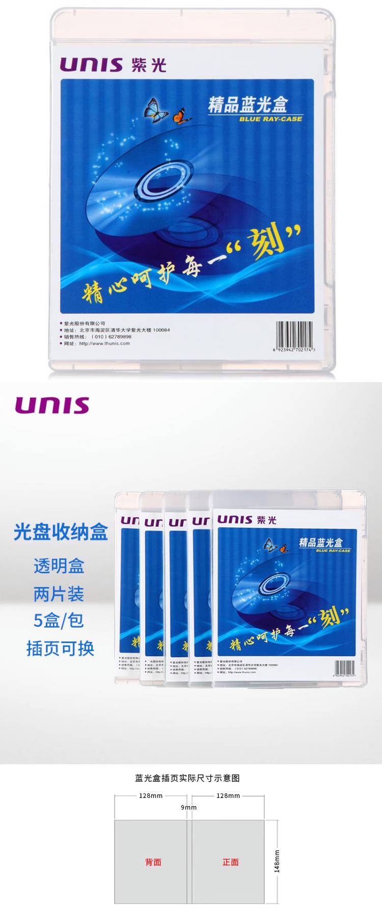 紫光(UNIS) 双面装 两面装蓝光通用光盘盒 双面装 (单位:包) 透明