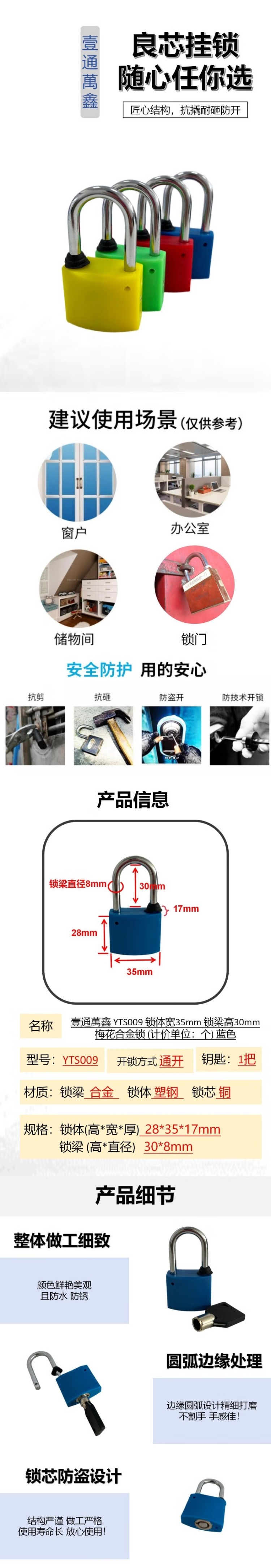 壹通萬鑫 YTS009 梅花合金锁 锁体宽35mm 锁梁高30mm (单位:个) 蓝色