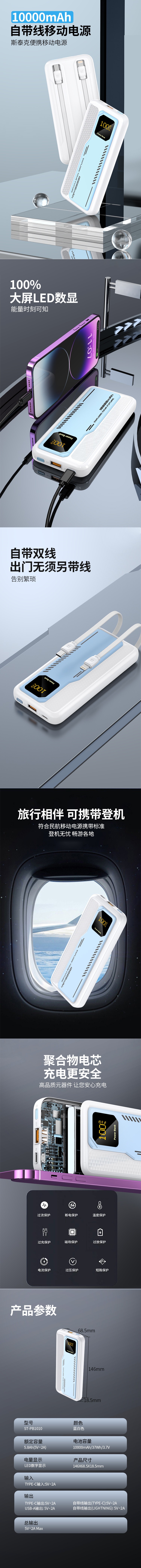 斯泰克(stiger) ST-PB1010 移动电源 10000毫安 (单位:个) 蓝白色