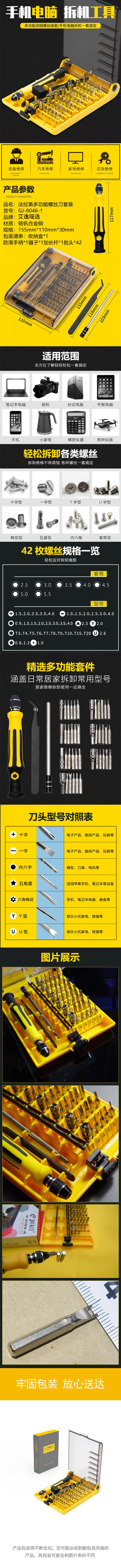 艾逸瑶选 GJ-8046-1 法拉第多功能螺丝刀套装 155*110*30mm (单位:套)