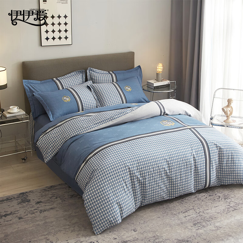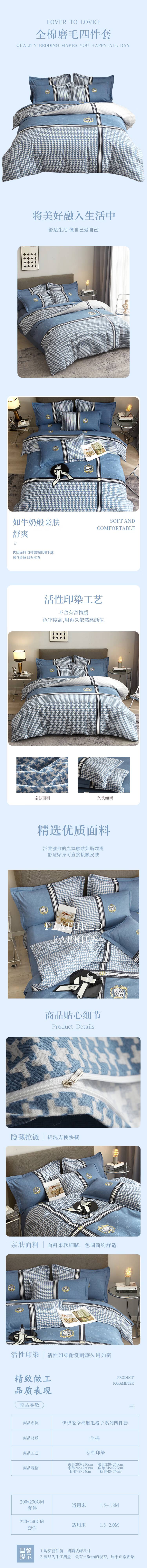 伊伊爱 TJ0MB02201696 全棉时尚生态磨毛四件套 200*230cm (单位:套) 蓝菲