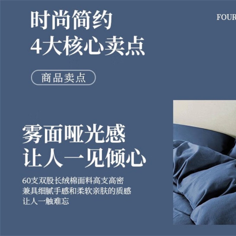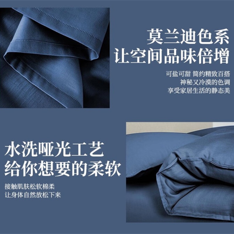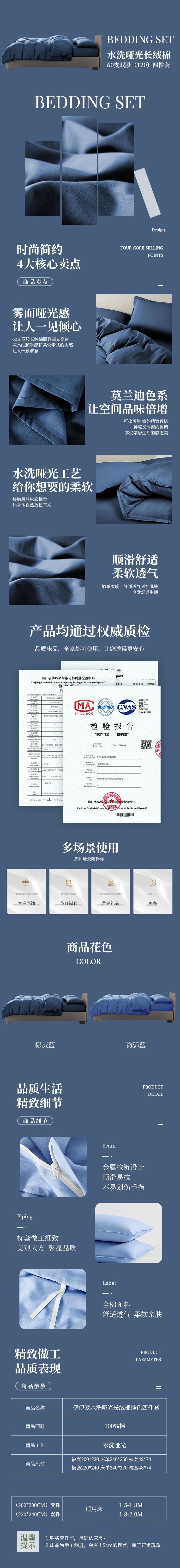 伊伊爱 TJ0WL02201550 水洗哑光长绒棉挪威系列纯色四件套 200*230cm (单位:套) 挪威蓝