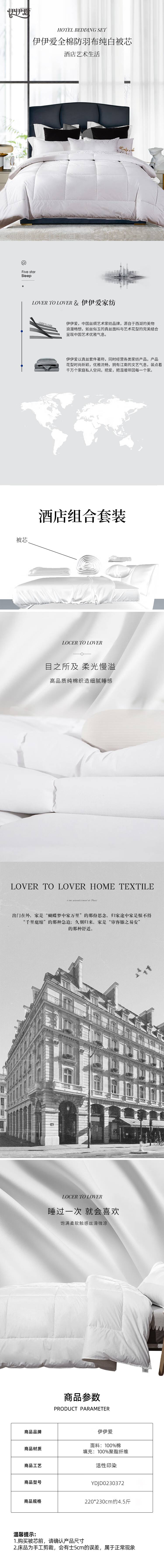 伊伊爱 YDJD0230371 全棉防羽布纯白被芯 180*220cm (单位:个) 白色