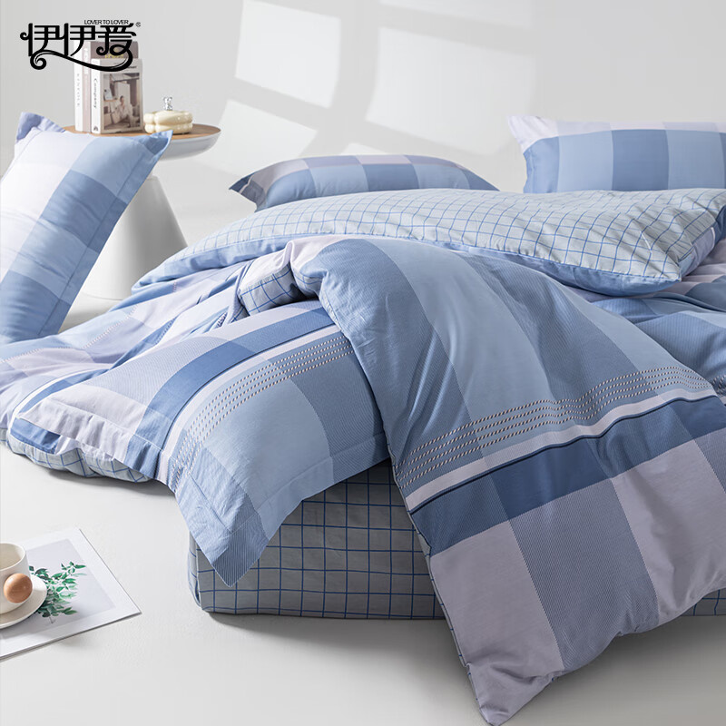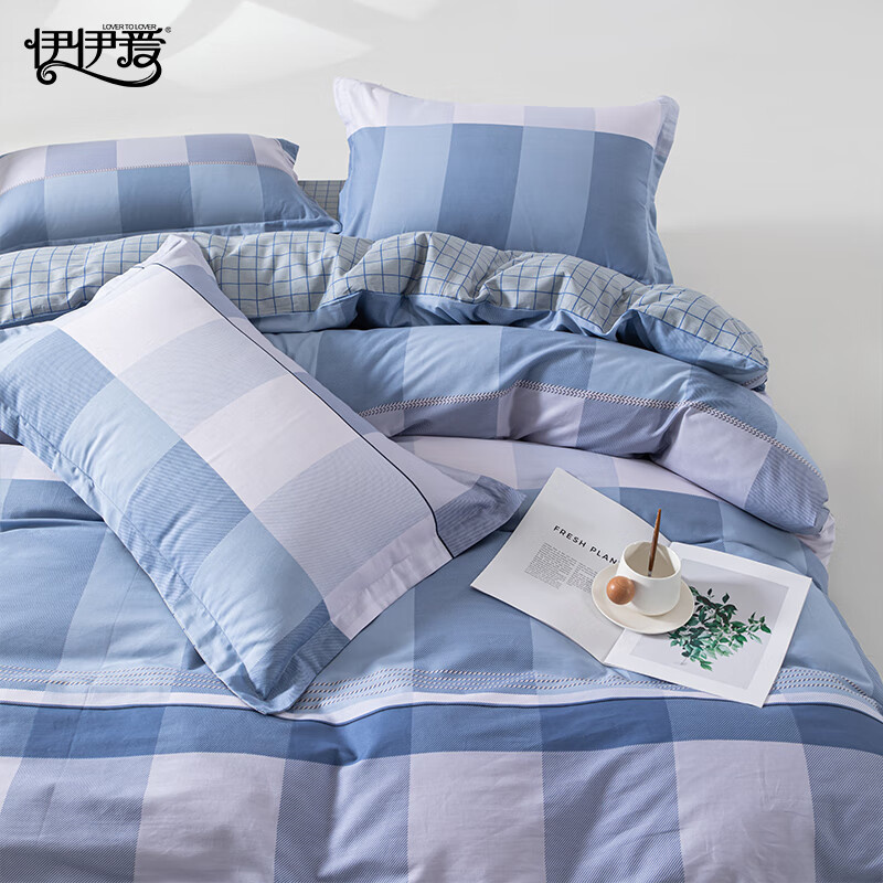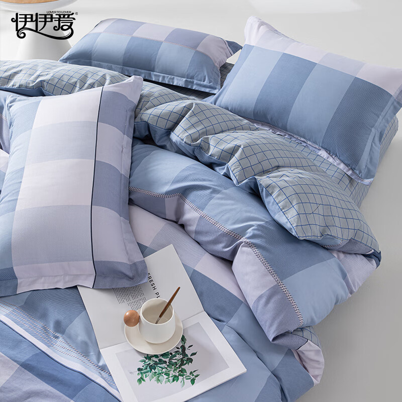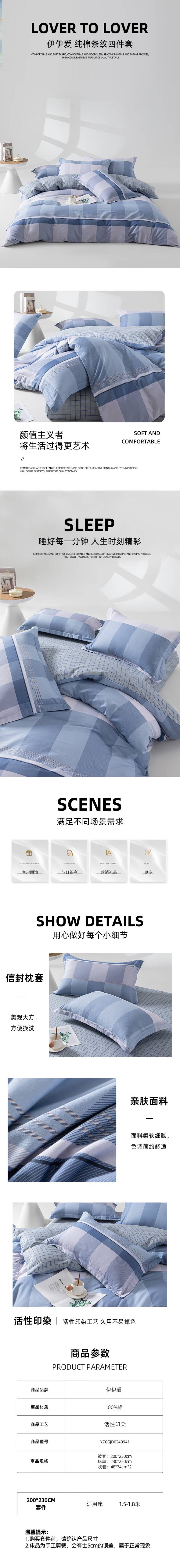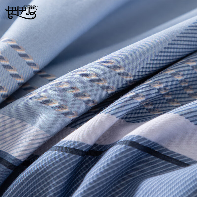 伊伊爱 YZCGJD0240941 纯棉条纹四件套 芙卡 200*230cm (单位:套) 蓝格