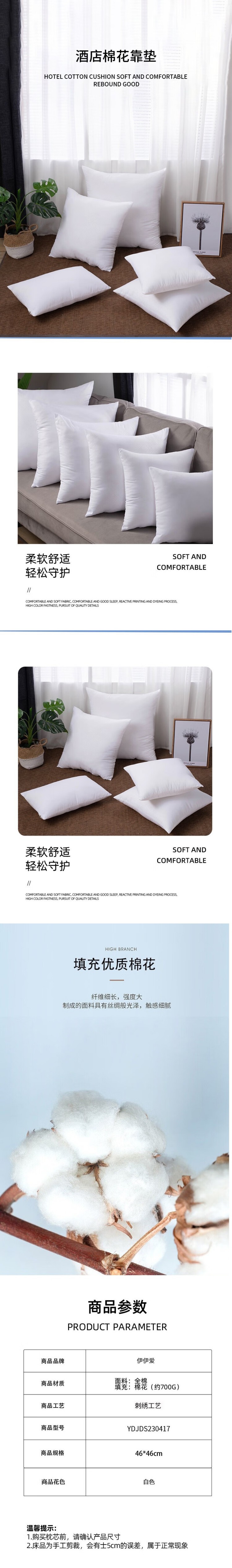 伊伊爱 YDJDS230417 酒店棉花靠垫 46*46cm (单位:个) 白色