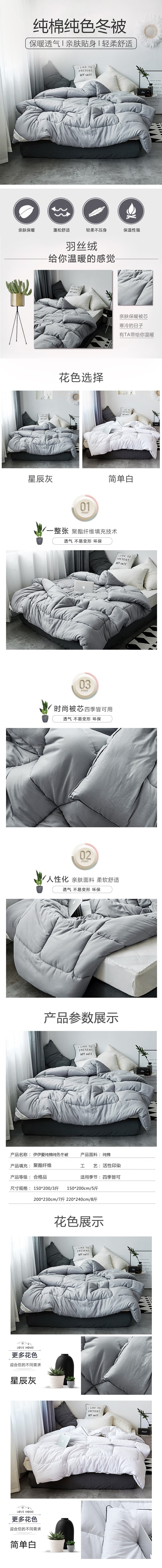 伊伊爱 Z01900028 全棉简约纯色秋冬被保暖被芯 150*200cm (单位:个) 星辰灰