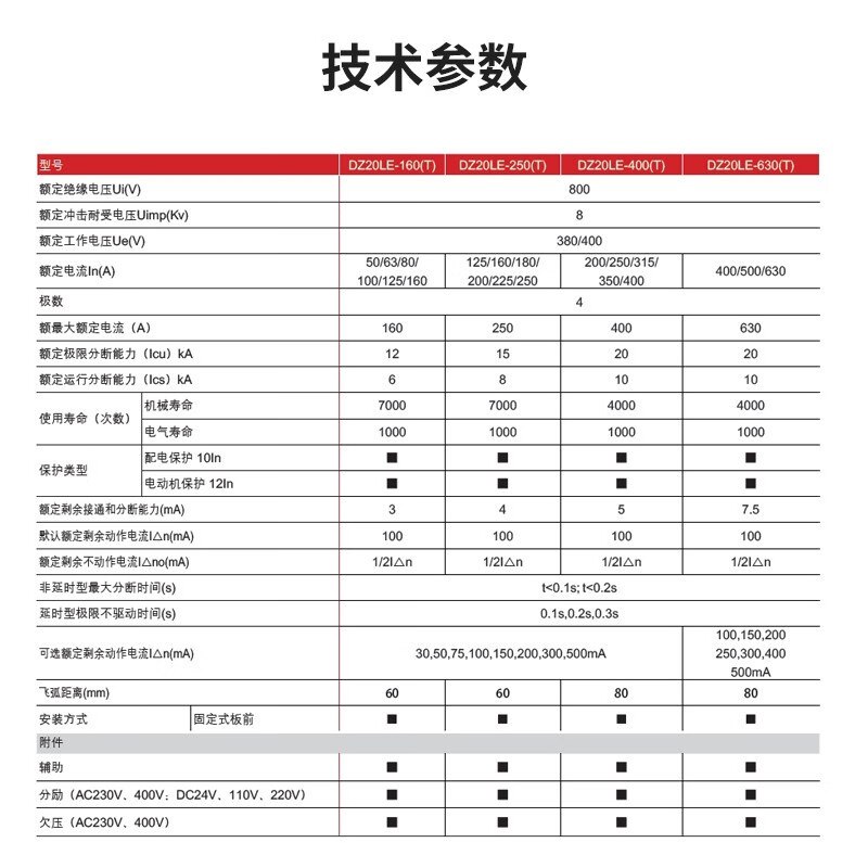 德力西电气 DZ20LE 漏电保护器 160A 30MA 透明 非延小于0.1 无铜鼻 (单位:个)