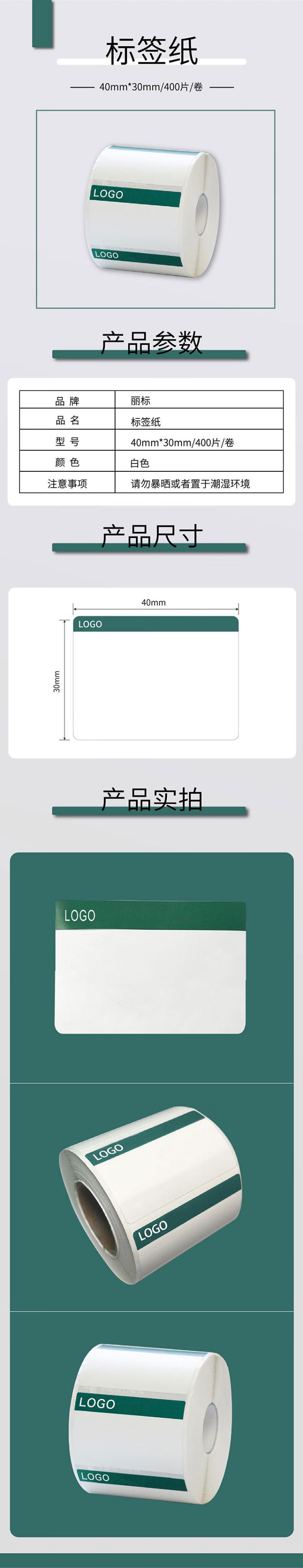 丽标(capelabel) YL4030W 标签纸 40mm*30mm 400片/卷 (单位:卷) 白色