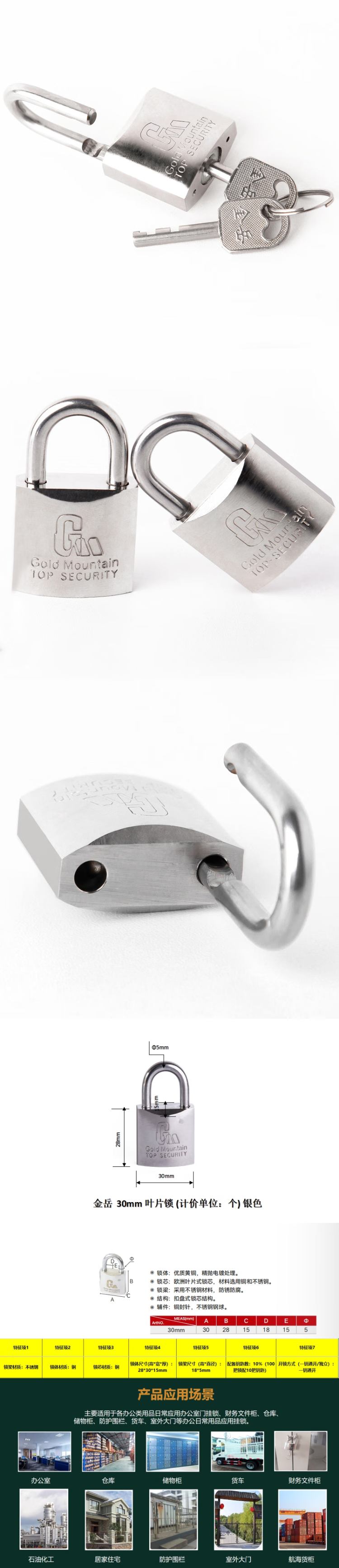 金岳 通开 叶片锁 30mm (单位:个) 银色