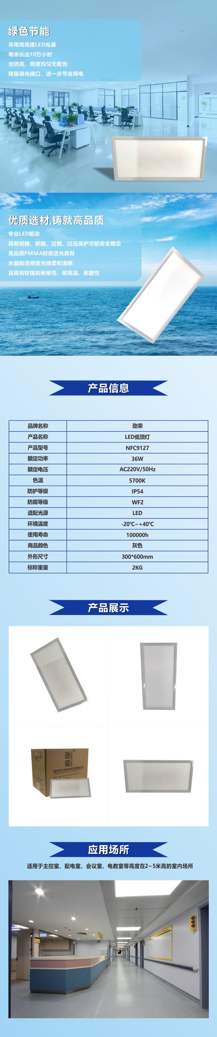 劲荣 NFC9127 LED低顶灯 36W 300*600mm 5700K (单位:台) 灰色