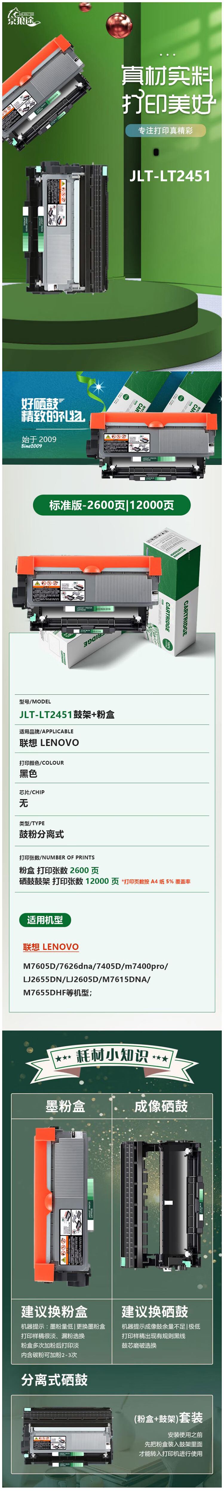 京狼途 JLT-LT2451 硒鼓无芯片 粉盒2600页 鼓架12000页 (单位:只) 适用LENOVO M7605D/M7626dna/M7405D等 黑色