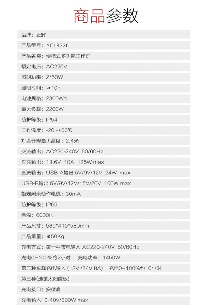 正辉(CHHI) 便携式多功能工作灯 2*60W AC220V IP65 6000K 白光 YCL8226黑色 (单位:台)