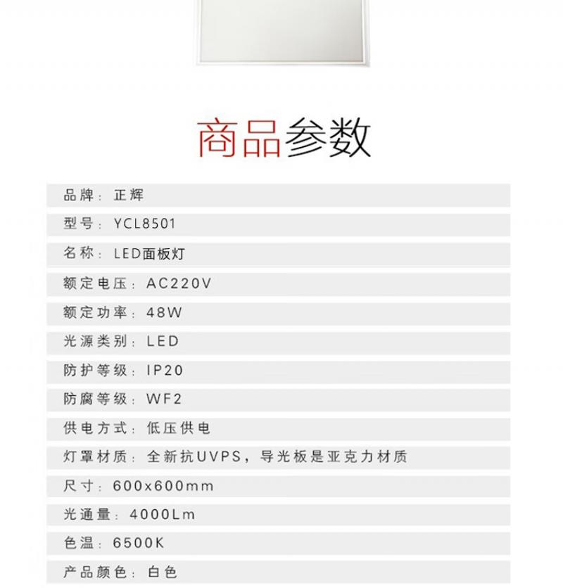 正辉(CHHI) LED面板灯 600×600mm 48W AC220V IP20 6500K 白光 YCL8501银白色 (单位:盏)