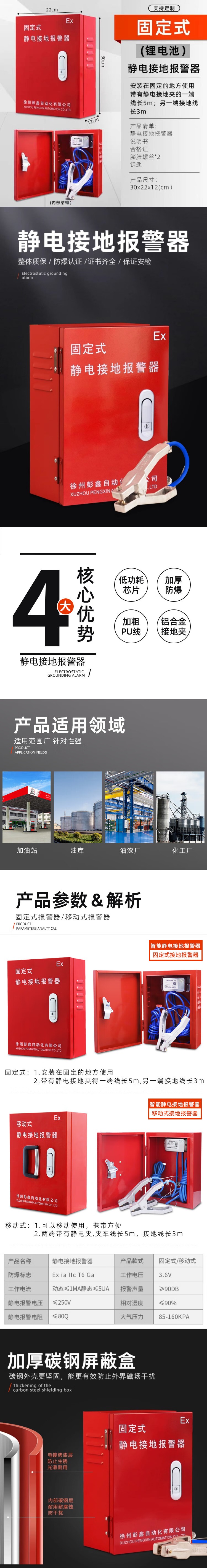 彭鑫 声音报警 静电接地报警器 <55Ω ExⅡCT6 内置锂电池 <5mA -20℃-60℃ <1s (单位:套)