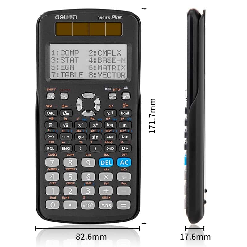 得力(deli) D991ES 函数计算器 171.7*82.6*17.6mm (单位:个) 曜石黑