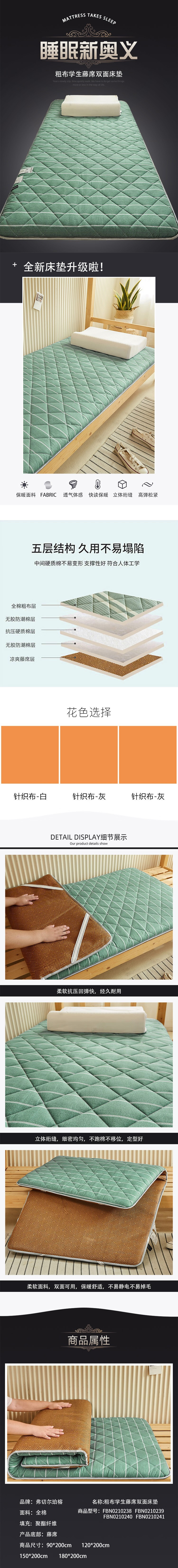 弗切尔珀榕 FBN0210241 粗布学生藤席双面床垫 180*200cm (单位:床) 新老产品随机发货 塞尼绿
