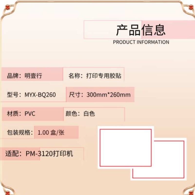明壹行 MYX-BQ260 打印专用标签 300mm*260mm (单位:张) 白色
