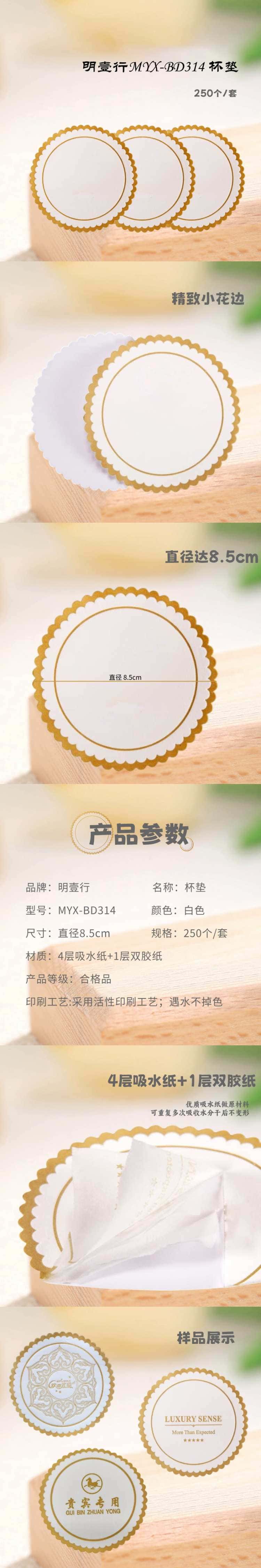 明壹行 MYX-BD314 杯垫 直径8.5cm 250个/套 (单位:套) 白色