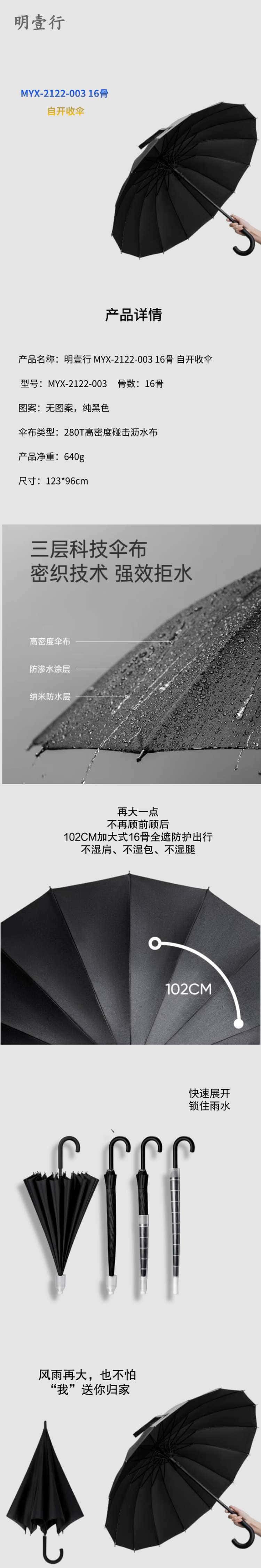 明壹行 MYX-2122-003 16骨雨伞 123*96cm (单位:把) 黑色