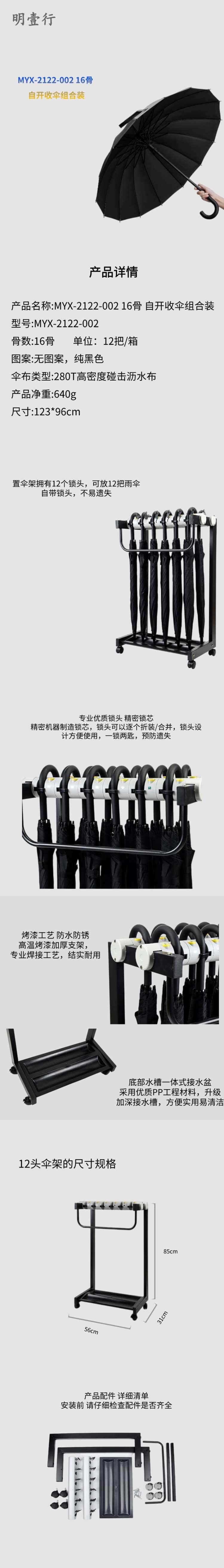 明壹行 MYX-2122-002 16骨雨伞 123*96cm 12把/箱 (单位:箱) 黑色