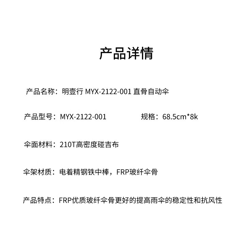 明壹行 MYX-2122-001 直骨自动伞 68.5cm*8k (单位:把) 绿色