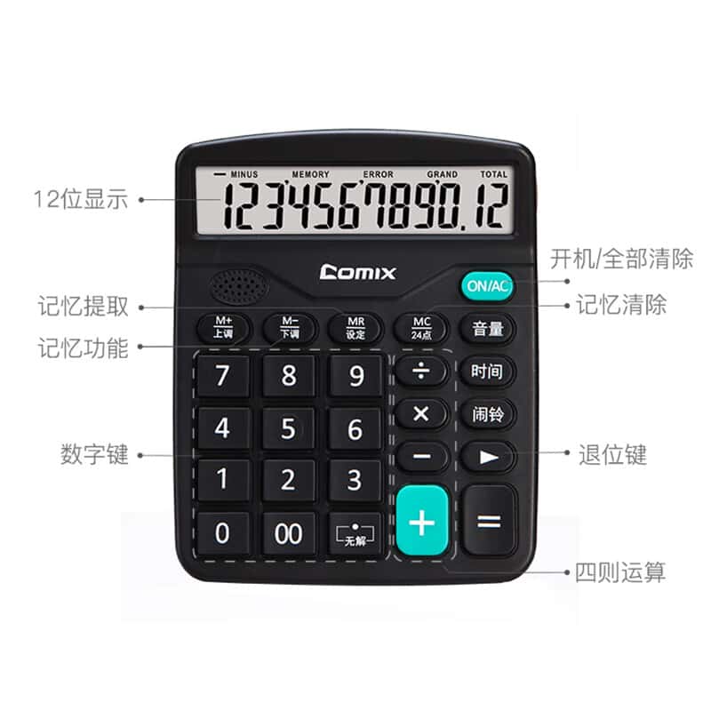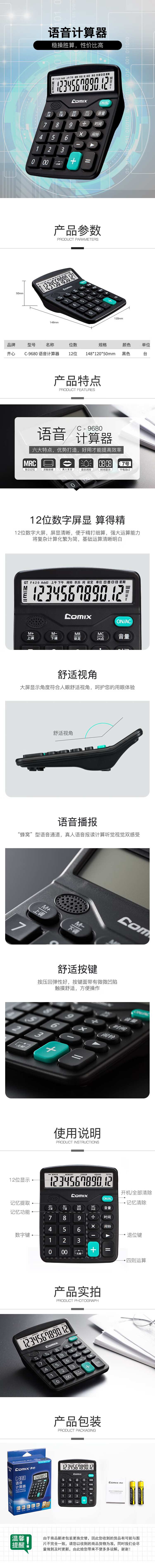 齐心(Comix) C-9680 语音计算器 12位 148*120*50mm (单位:个) 黑色