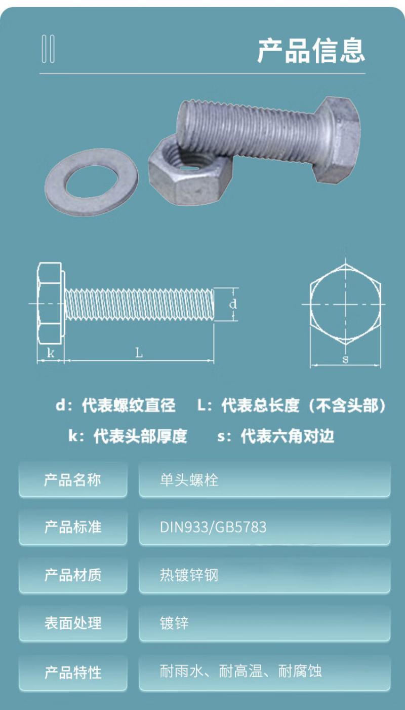 黔三元 M16*140 热镀锌六角单头螺栓 含1母1垫 单位:套 10套起订