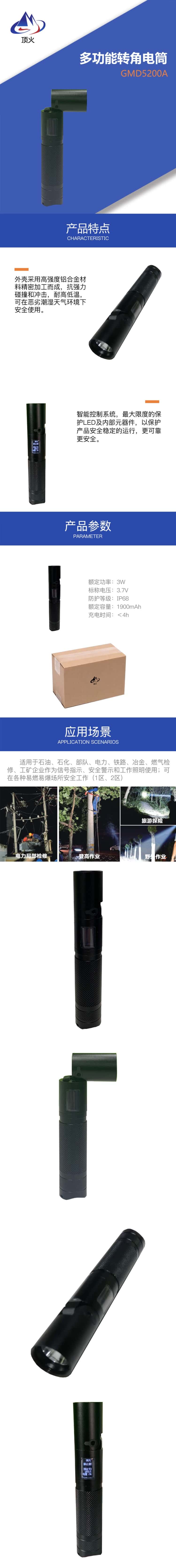 顶火 GMD5200A 多功能转角电筒 3.7V (单位:个) 黑色