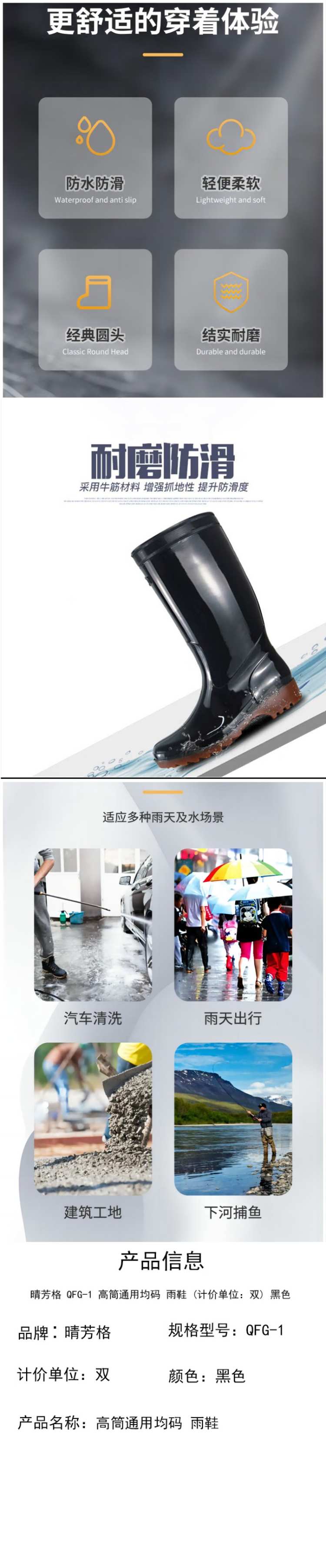 晴芳格 QFG-1 高筒雨鞋 均码 (单位:双) 黑色