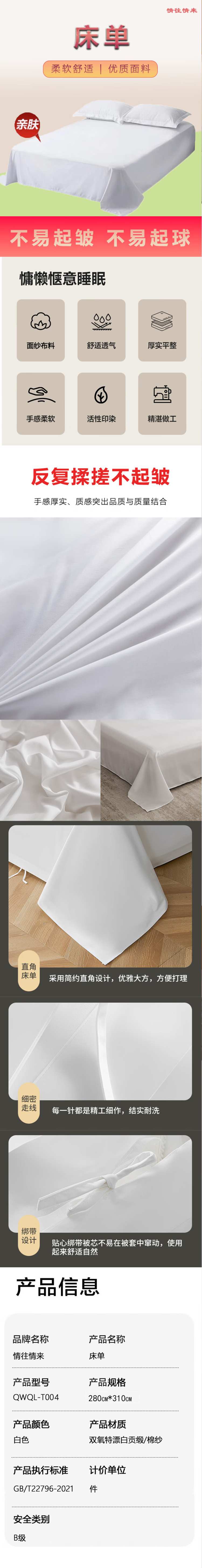 情往情来 QWQL-T004 床单 280cm*310cm (单位:件) 白色