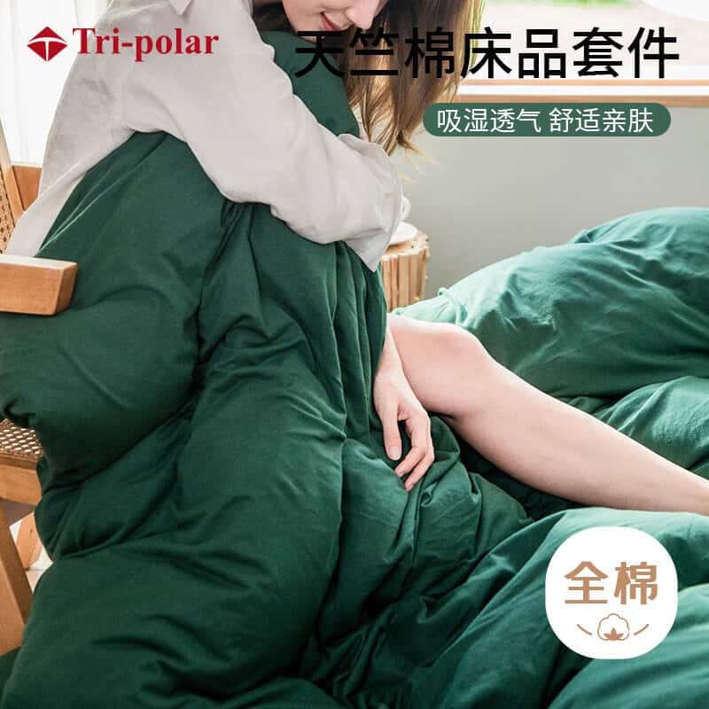三极户外(Tripolar) TP2982 天竺棉四件套 1.8m床笠款 (单位:套) 墨绿色