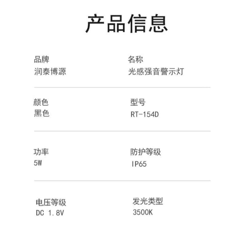 润泰博源 RT-154D 光感强音警示灯 5W (单位:个) 黑色