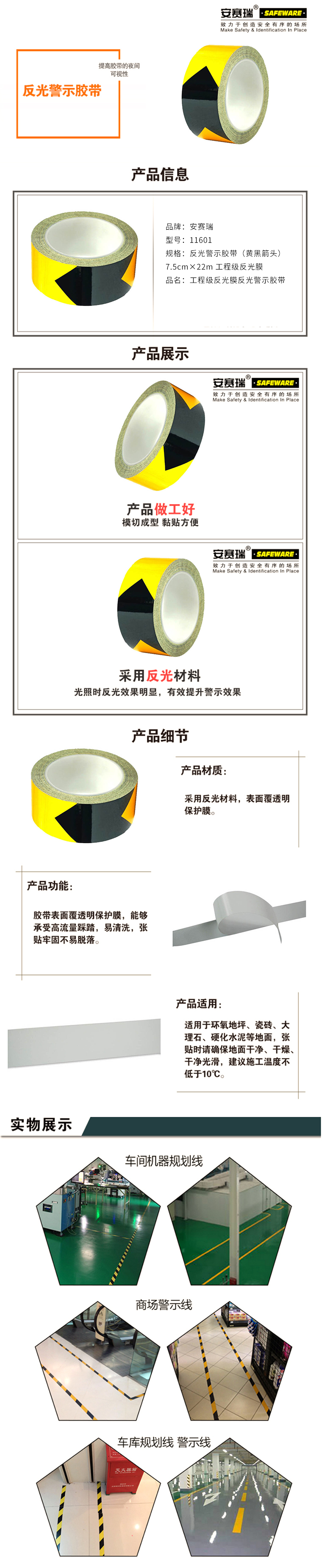 商品名称 工程级反光膜反光警示胶带 黄黑箭头