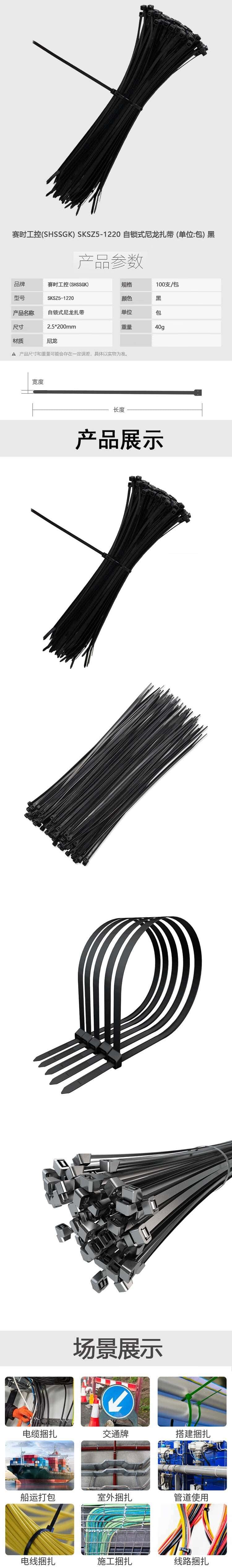 赛时工控 SKSZ5-1220 自锁式尼龙扎带 2.5*200mm 100支 (单位:包) 黑色
