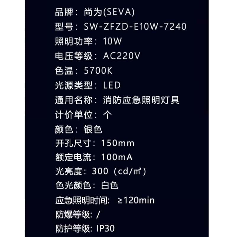 尚为(SEVA) SW-ZFZD-E10W-7240 消防应急照明灯具 10W (单位:个) 银色