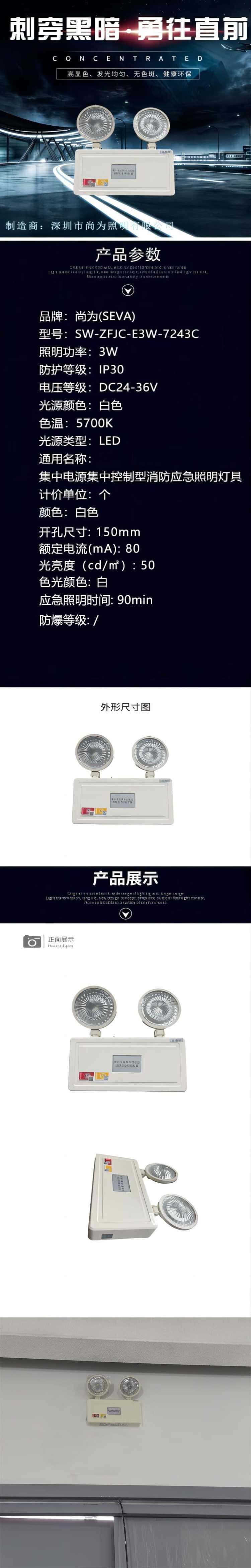 尚为(SEVA) SW-ZFJC-E3W-7243C 集中电源集中控制型消防应急照明灯具 3W 白色5700K (单位:个) 白色