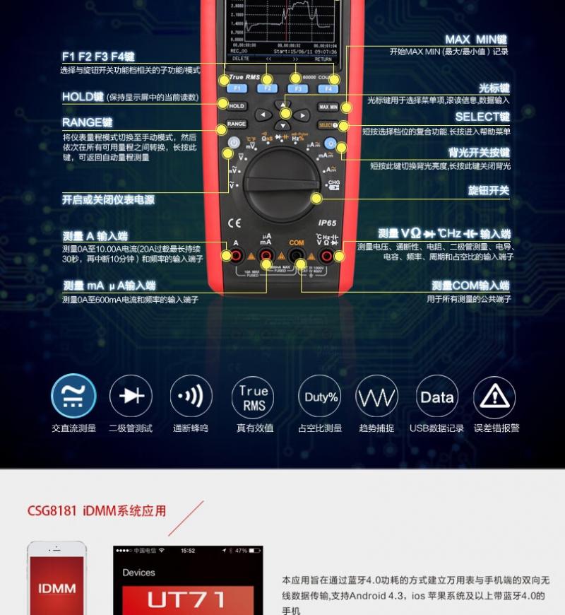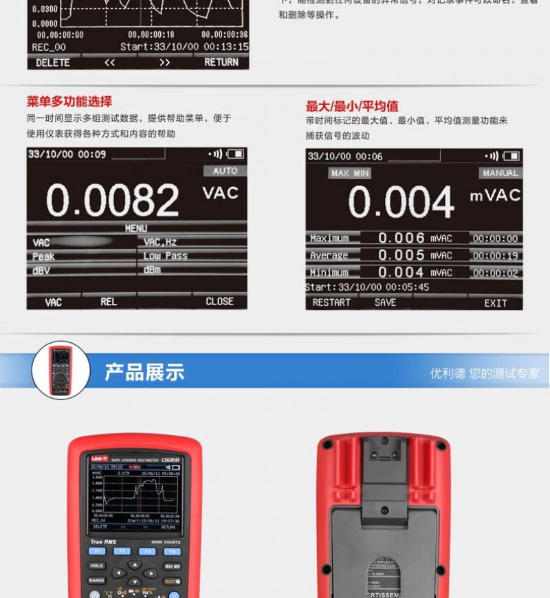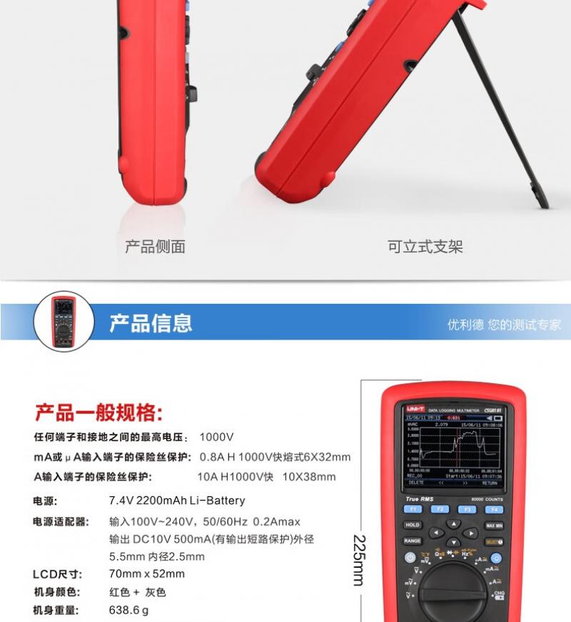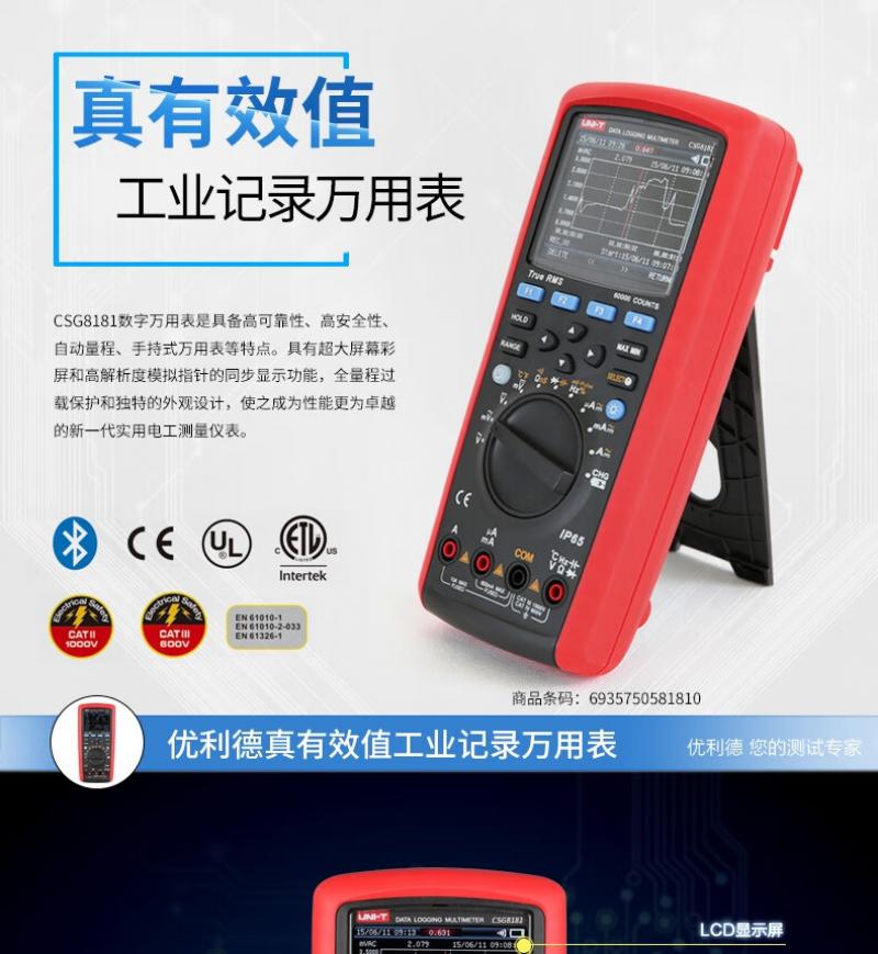 优利德(UNI-T) 真有效值工业记录万用表 CSG8181 (单位:台)