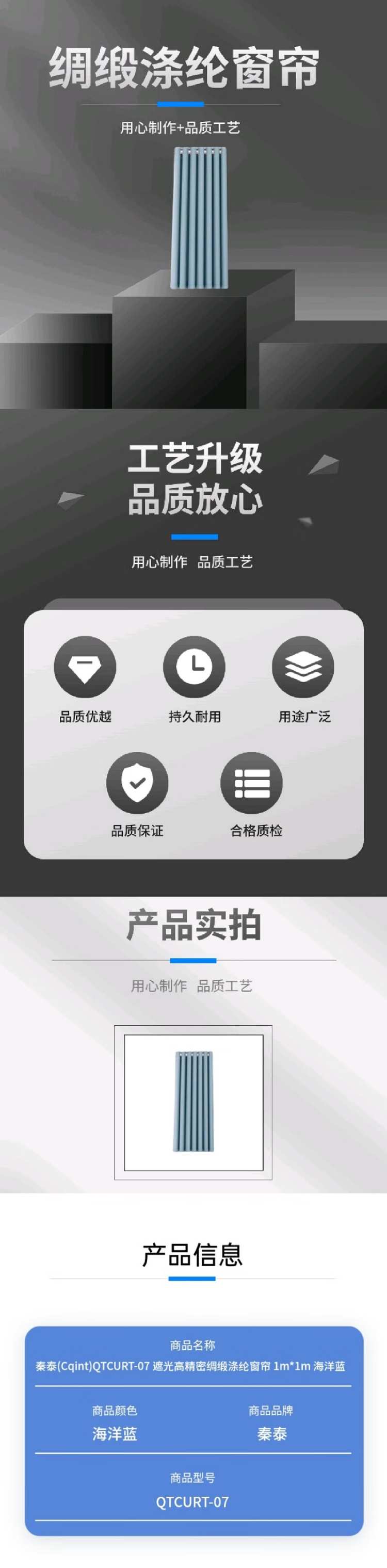 秦泰(Cqint) QTCURT-07 遮光高精密绸缎涤纶窗帘 1m*1m (单位:个) 海洋蓝