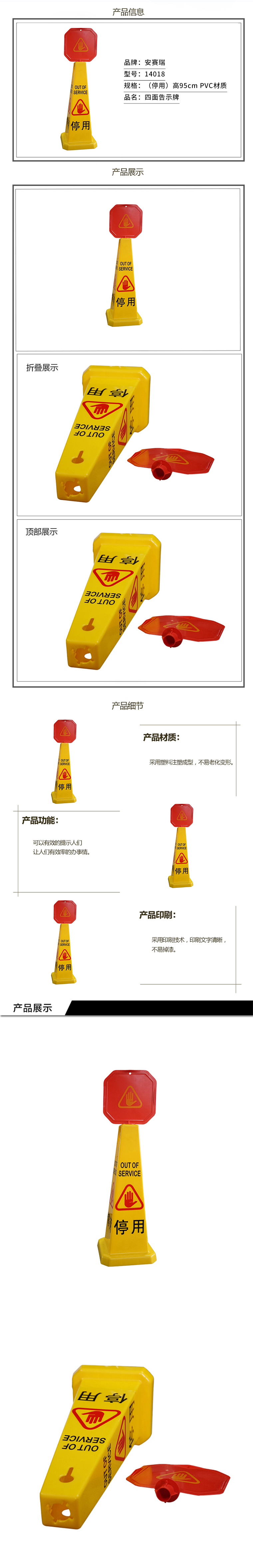 安赛瑞 14018 PVC四面告示牌 停用 高95cm (单位:个)