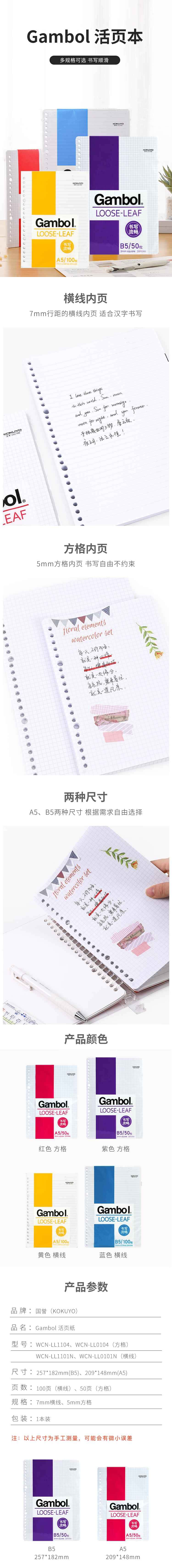 国誉(KOKUYO) LL0101 活页芯笔记本 B5 26孔 100页/本 (单位:本) 白色