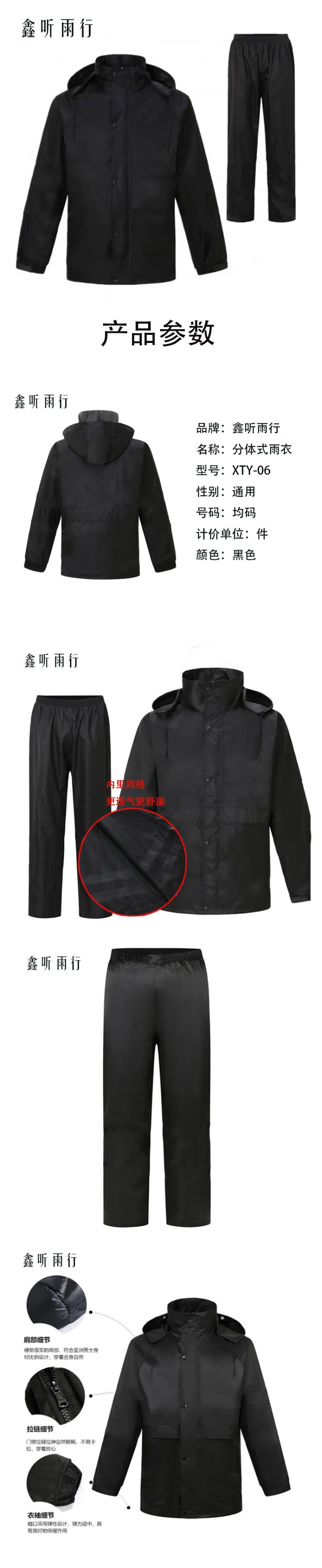 鑫听雨行 XTY-06 分体式雨衣 均码 (单位:套) 黑色
