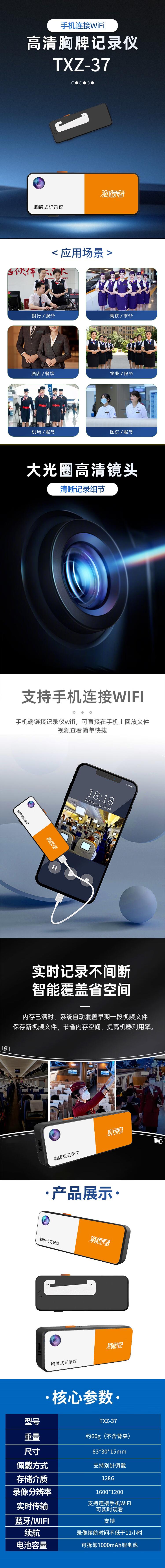 淘行者 TXZ-37 胸卡式记录仪 128G (单位:台) 白橙色