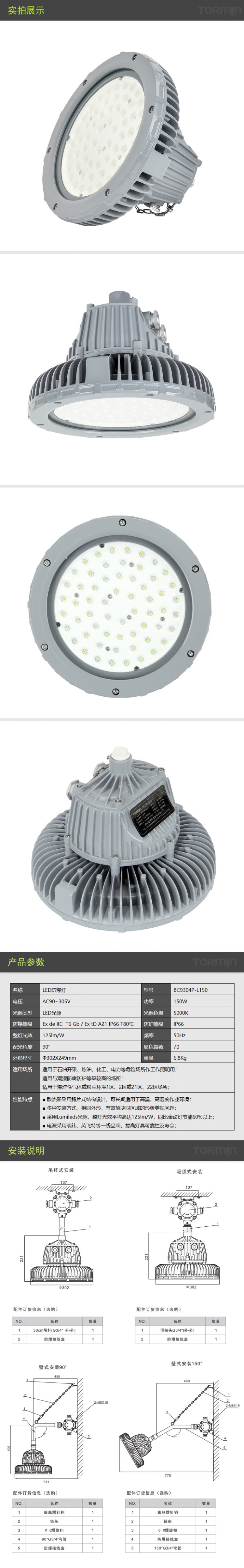 通明 BC9304P-L150 LED防爆灯 150W5000K (单位:盏) 灰色