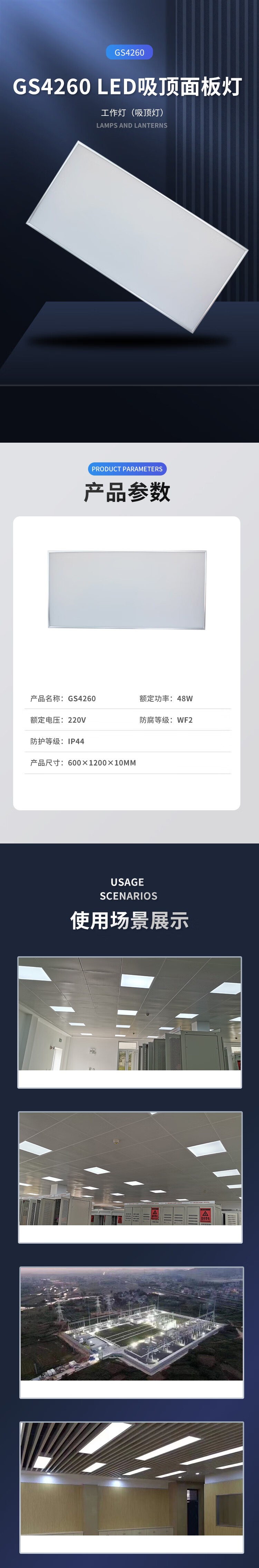 深照紫光 GS4260-48W LED吸顶面板灯 48W 300mm*1200mm 嵌入式 (单位:套) 白色