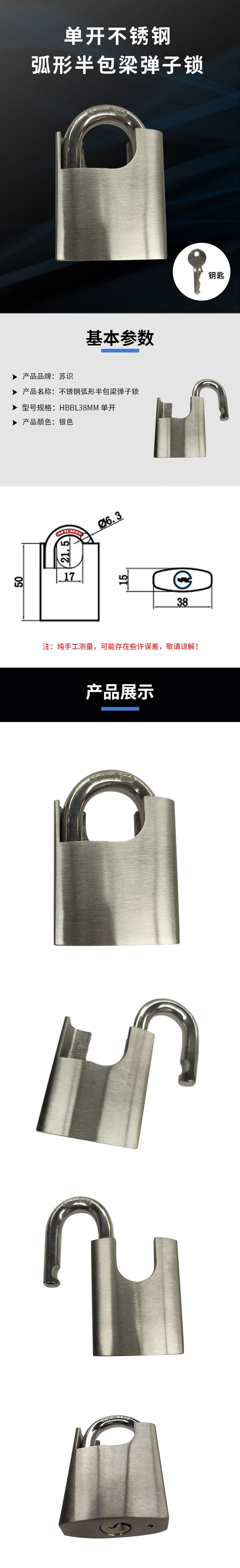 苏识 HBBL38mm 不锈钢弧形半包梁弹子锁 单开 (单位:个) 银色